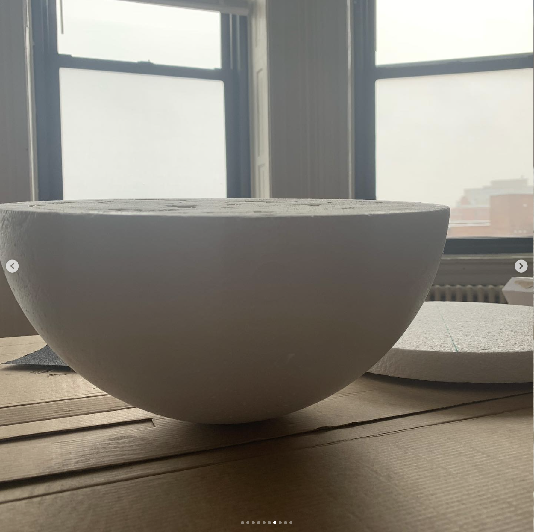 This sculptural object, created in collaboration with the amazing artist Pete Karis and Paradise Labs, is first introduced in a process involving two main components: a hand-polished styrofoam half-sphere and a subsequent 3D-printed grooved cone glazed in red automotive paint. This is later translated into a large-scale inflatable sculpture iteration of the small-scale model, constructed with 500D Nylon. This dramatic shift of scale is, of course, deliberate, and is intended to generate a disorienting effect in the viewer. In addition, the thoughtful placement of the small artwork in the gallery space, followed by the large-scale model in the basement, is created purposefully to contrast the narrative of the real world (Baltimore) to the secret dimension that lurks in the spaces beyond the gallery walls.