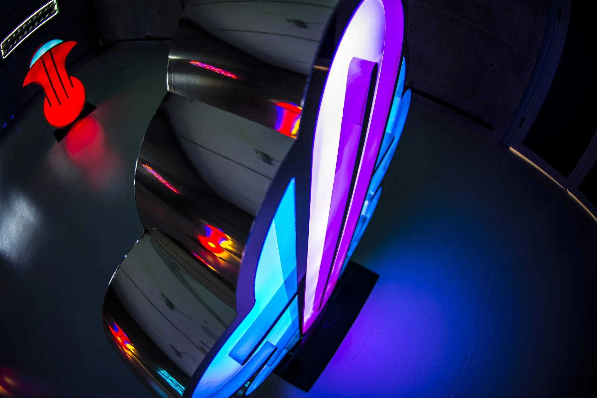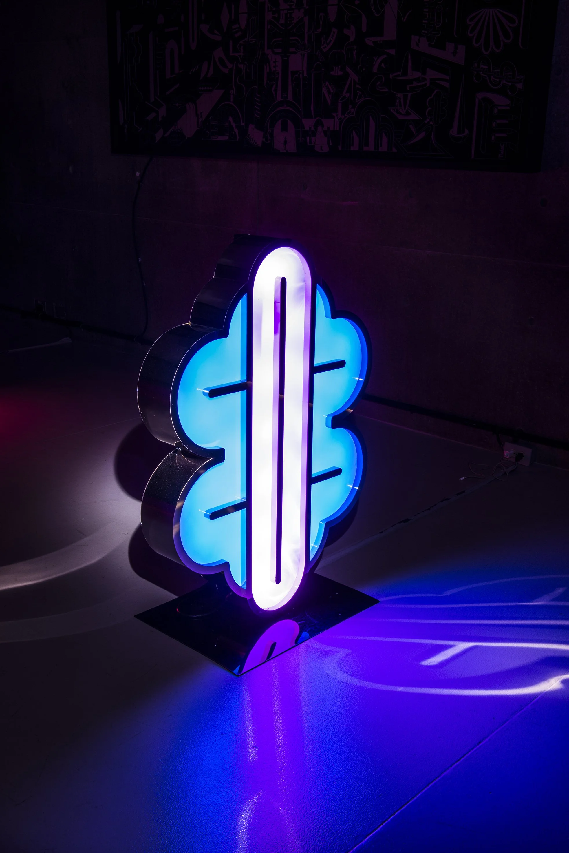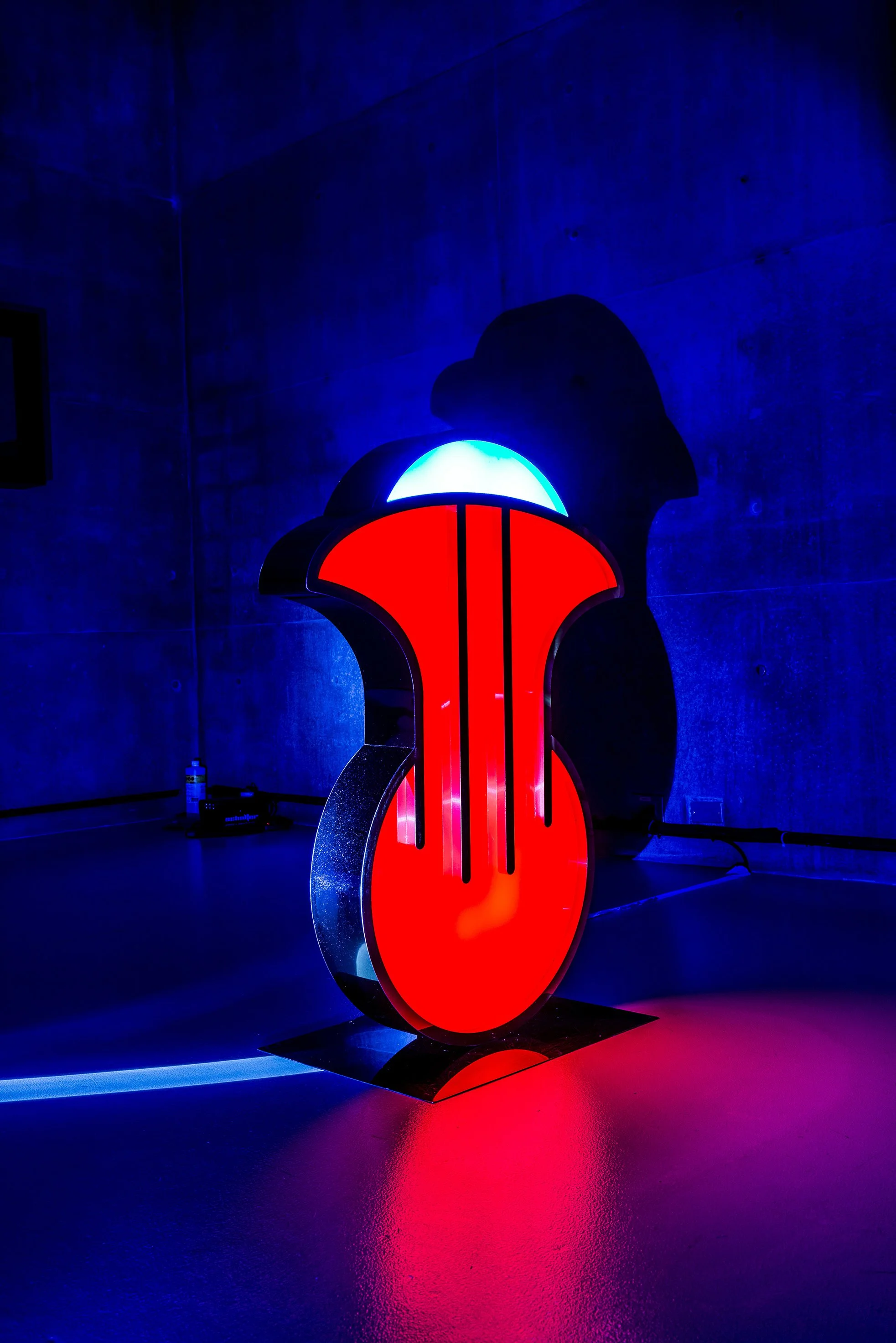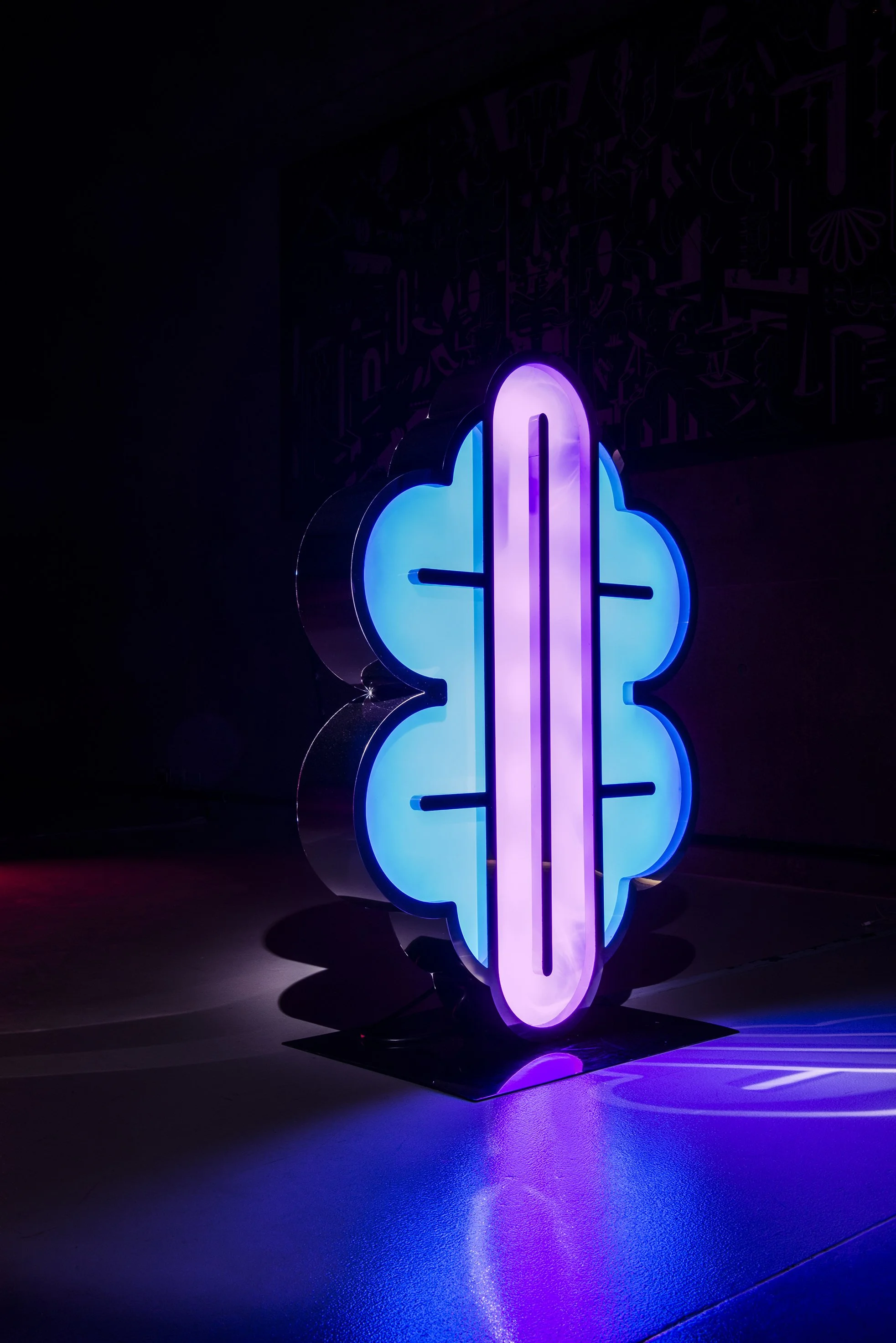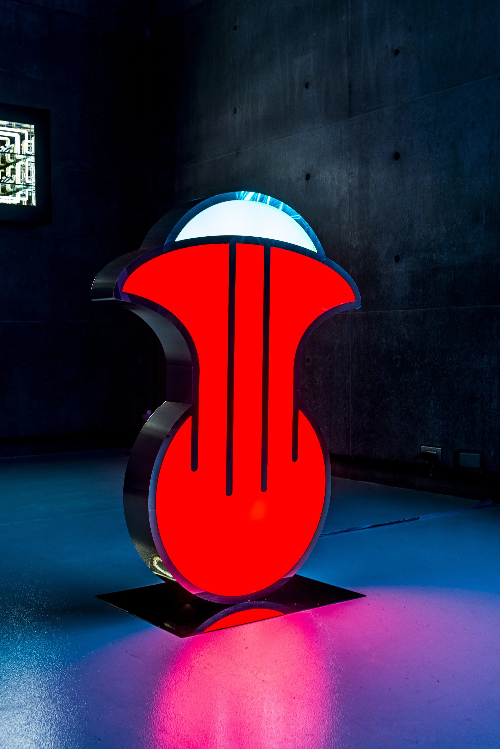 Inspired by the mysterious languages that were spoken in the Boreal and Austral Hemispheres of the respective regions of Tlön, these unknown symbols stand motionless like strange monoliths, with the intention of revealing a coded message that we are unable to understand. The light that emanates from these hieroglyphs, lures us closer to them with the purpose of losing ourselves in their colors and disquieting forms, in a trance that allows the viewer to travel inwards to a reflective self interior space. A place that may hold the key to decode the universal language that this secret alphabet contains.