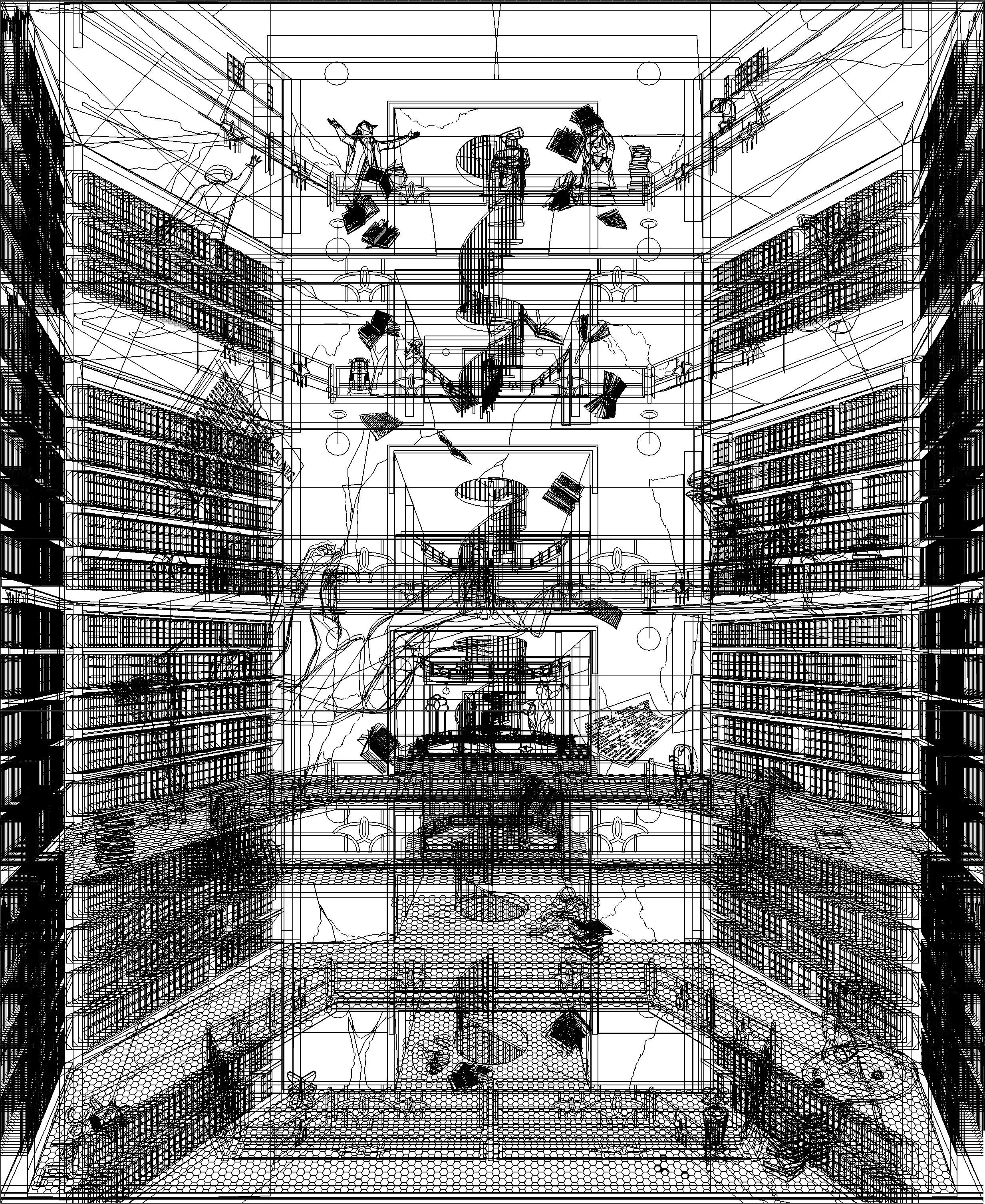 I chose “LA BIBLIOTECA DE BABEL,” not just because I found this short story fascinating, but for the incredibly-rich and intricate depiction Borges created. All this "almost-palpable" story, got stuck in my head so bad; that I realized that the only way to ease my mind, was to make this story tangible through my own illustration voice. I created this illustration trying to contain the full story told by Borges in one single image (an image that implies just a section of endless layers, both up and downwards), in order to show as faithful as possible; the “hell and chaos” he masterfully described in this infinite library.