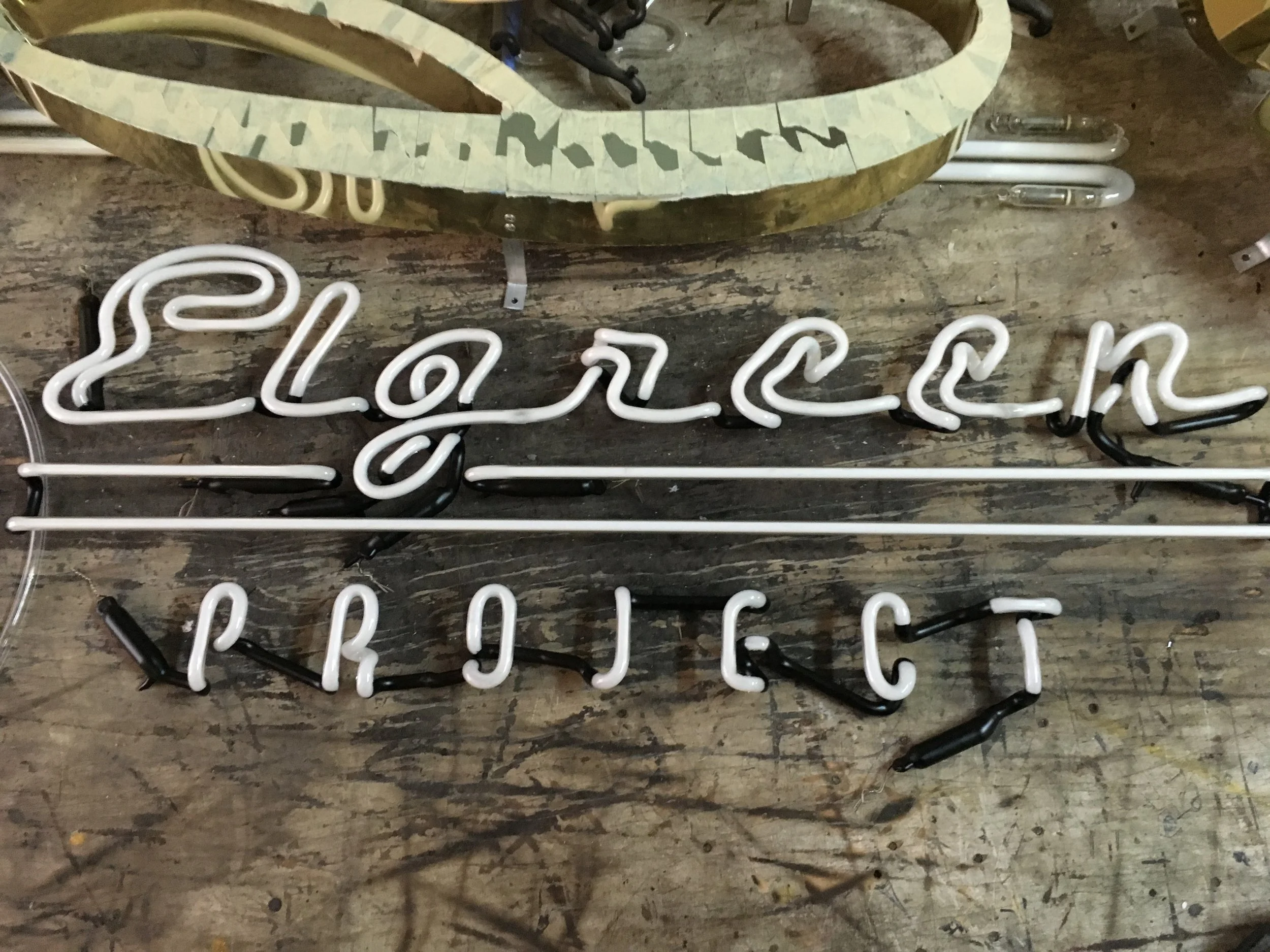 Created for my first solo exhibition "Strangely Familiar", this neon sign has been the constant element of identity, that has served as an unmistakable sign that points towards the portal to the various universes contained in each iteration of the Elgreen Project exhibitions.