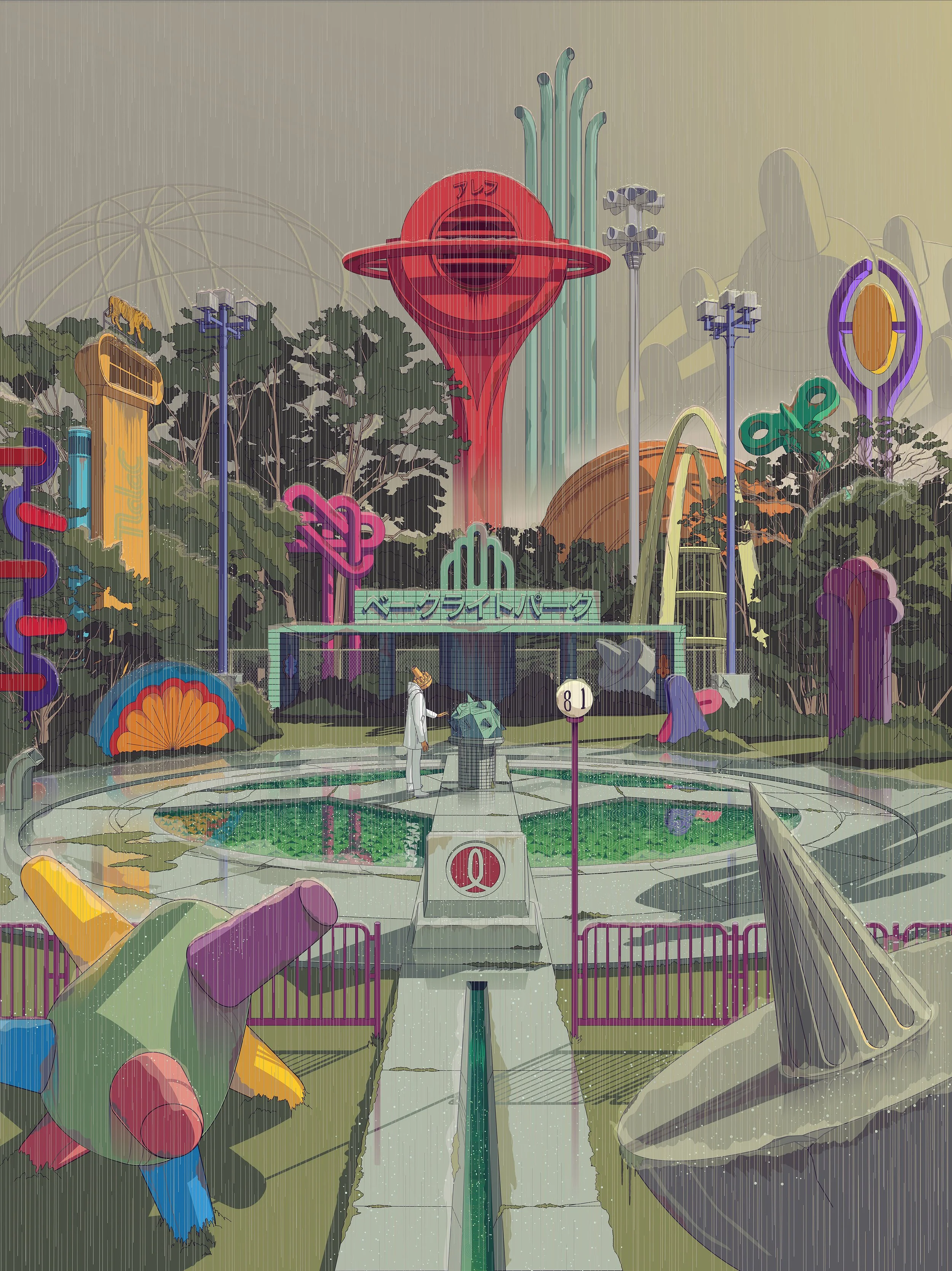 This vector illustration is based on Jorge Luis Borges short story El Zahir. I wanted to illustrate the ill-fated moment when a character falls in to the spell of the Zahir for the first time. With this image I intend to evoke the smell of wet pavement through the allegory of rain, in an unknown and ominous place.