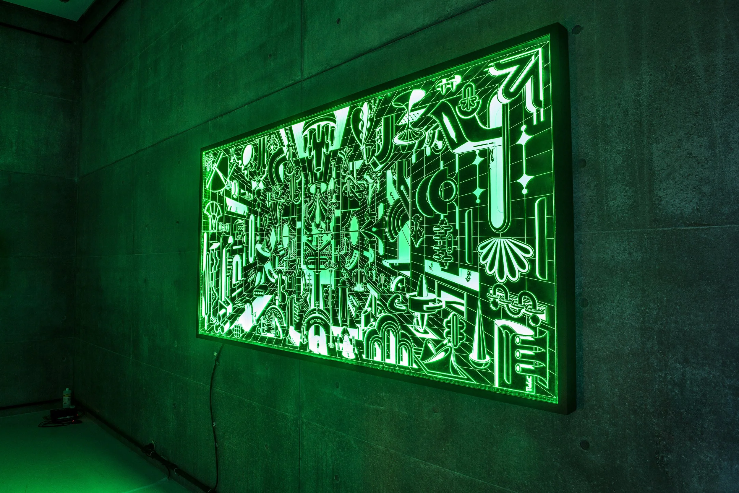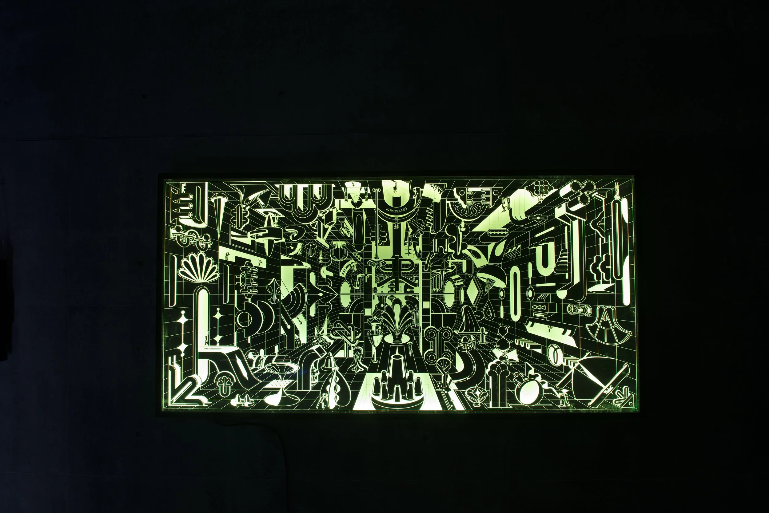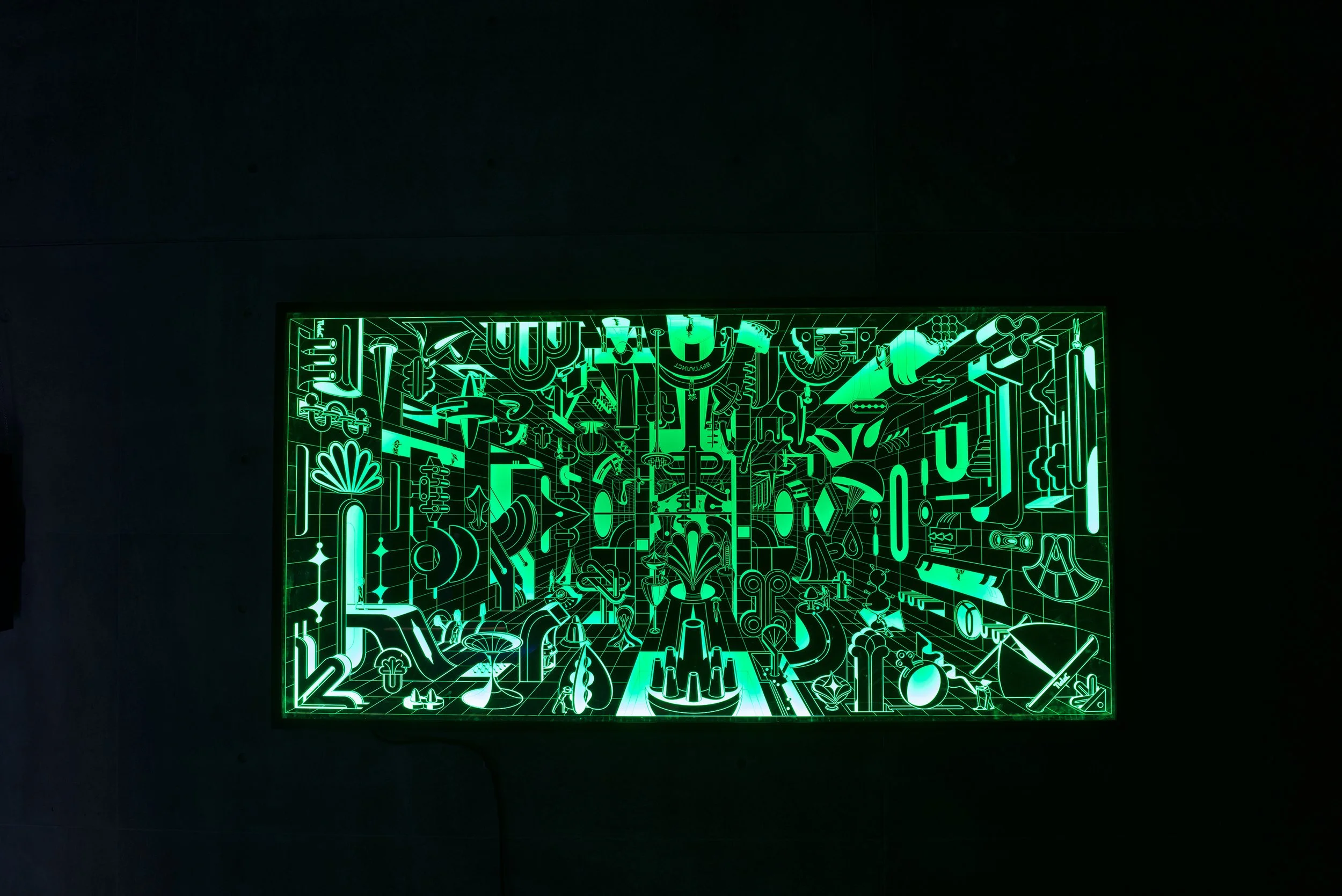 Third illustration of the series "FICCIONES" This illustration pays homage to the predominant industrial aesthetic that prevails in my hometown. This image is based on the massive interiors of defunct industrial buildings that once lit the city's skies with the intimidating glow of red-hot molten steel. In its entrails full of unknown mechanisms is a group of tireless workers who operate levers, heavy machines and push the buttons that control this complex living space with an unknown purpose.