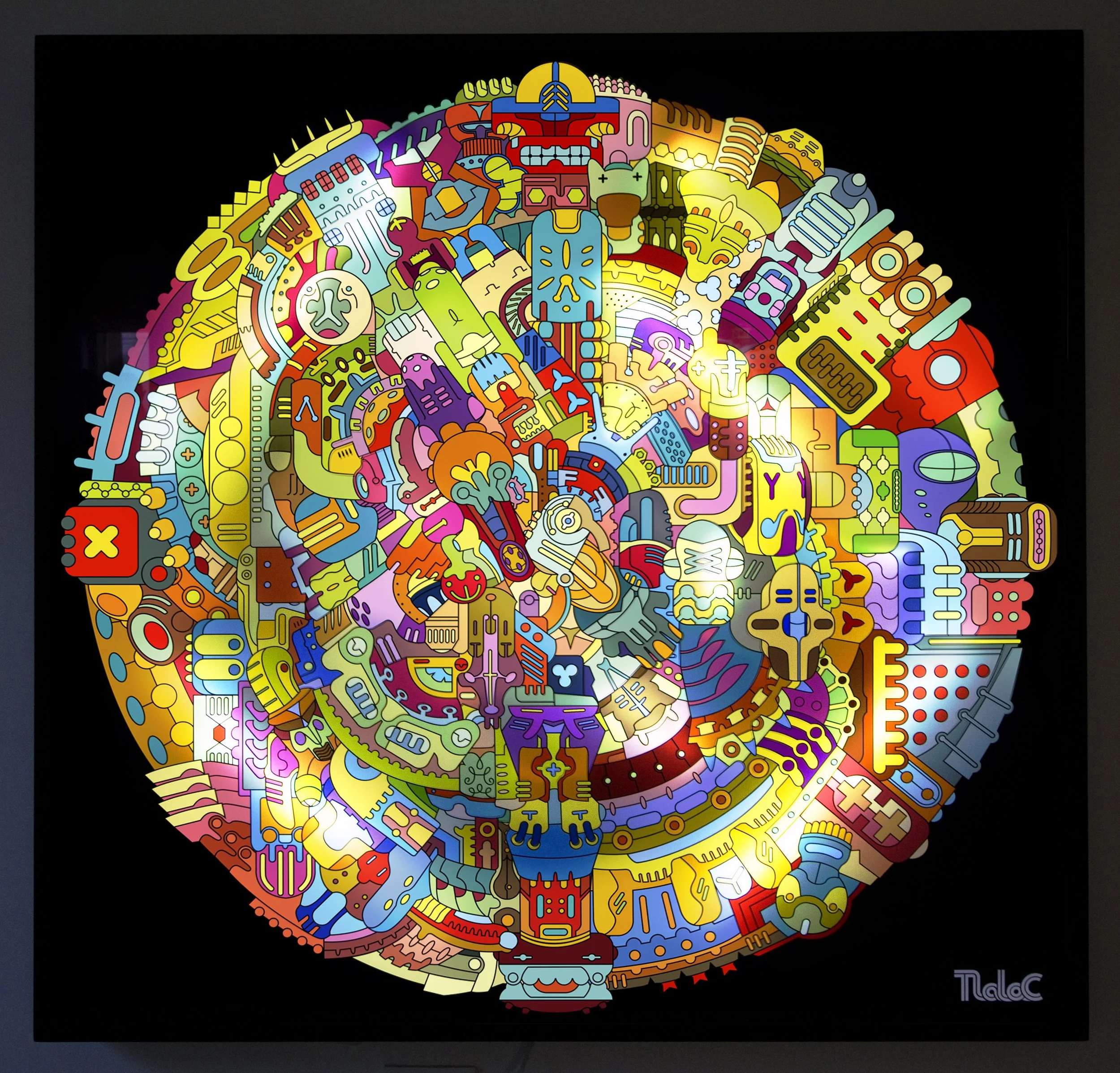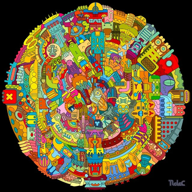 Conceived with the intention of creating a continuous “visual noise”, this project was created in an "automatic" fashion by letting the elements materialize without previously establishing any guide, shape or color. This resulted in an unexpected disc shaped composition with self-generated objects that later gave shape to the alternate Elgreen Project (Non)bjects collection: "RUIDO" where I finally selected and refined the top 10 strangely familiar artifacts that stemmed from this composition, that seemed most fitted to the Nostálgica larger collection aesthetic.